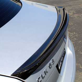 Unlike the Renntech car last week, this CLK63 has over $23,000 in performance Kleemann parts. This includes Kleemann long tube headers, high flow throttle bodies, ECU upgrade, Euro spec air boxes and limited slip differential. In addition to these Kleemann parts, the brake rotors were upgraded with light weight Evosport rotors (all around) with stainless steel brake lines. Also installed are 12mm wheel spacers front and rear with a forged wheel stud conversion kit. The wheels were powder coated black with the face machined back to silver and then entire wheel clear coated- a look we don’t hate but much prefer the original finish. Front side signals painted Iridium Silver to match body and a front and rear radar/laser detector has been installed into the dashboard/console.