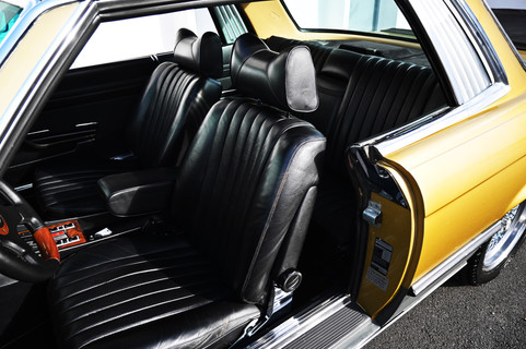 Finished in a beautiful Icon Gold, this SLC looks to be in fantastic condition. The lower cladding has been painted in a complimentary medium grey and accented with paint-matched BBS Mahle wheels. The body appears to be in great shape and doesn’t seem to suffer from any major defects but moreover the paint still retains a fantastic finish along with the chrome trim and bumpers.