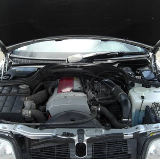 Most notably the Sport kit offers some great modifications from the factory; AMG-styled ground effects, AMG suspension, six spoke sport wheels, a mock lightweight trim, white sport gauges, and deeper AMG-style bucket seats. The Sport shift knob and steering wheel should look familiar to most enthusiasts as they’re directly borrowed from the R129 Sport models as well. Other notable features include the period correct Bose stereo with the Becker head unit, rear folding seats, and even the (severely underrated) Rest feature on the climate.